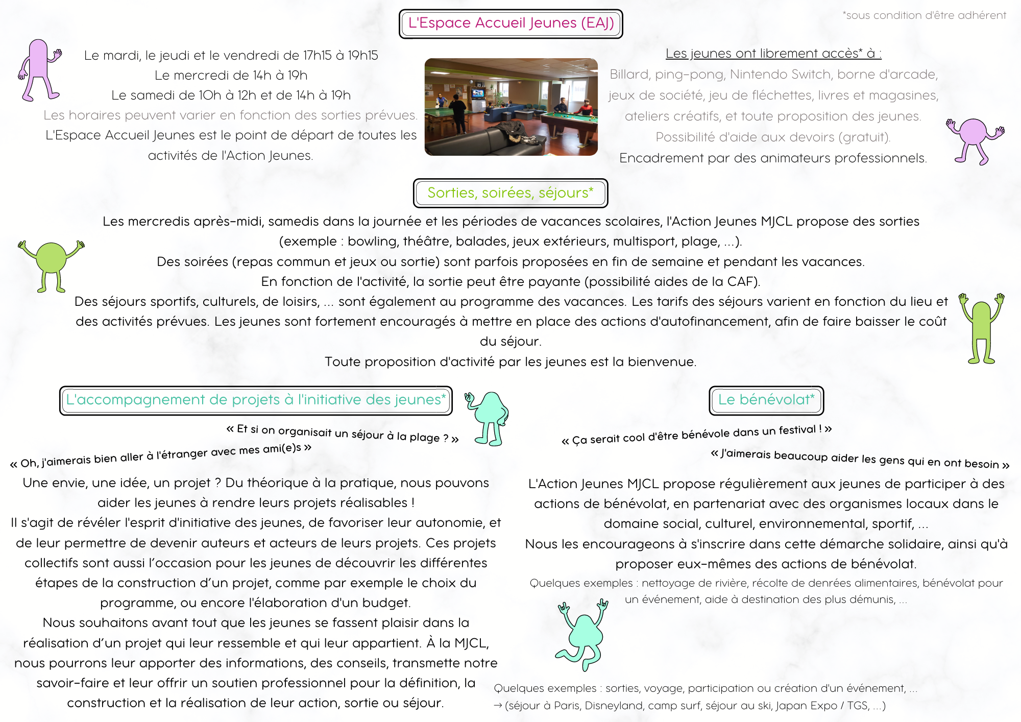 C'est un espace de construction de projets, de sorties, de séjours sportifs ou culturels et un Espace Accueil Jeunes